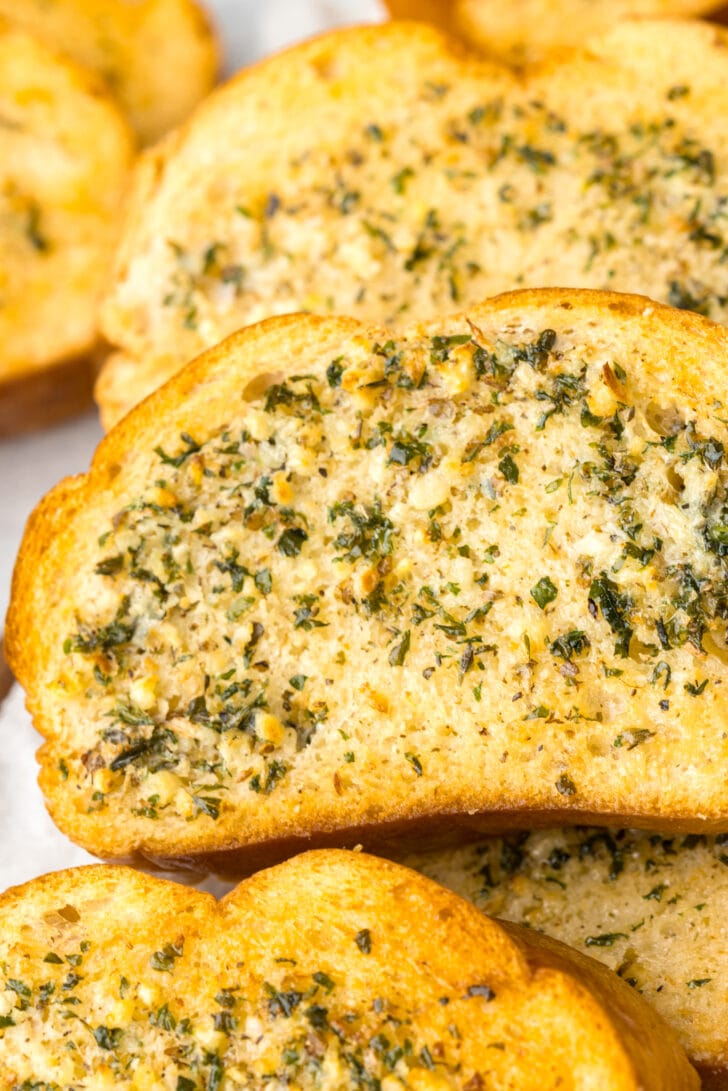 Yes, garlic bread can be frozen. Spread the garlic butter mixture on each slice, place them on a baking sheet, and freeze until solid. Then, transfer the slices to a freezer bag. When ready to cook, pop the frozen garlic bread in the air fryer and add an extra 2-3 minutes to the cooking time.