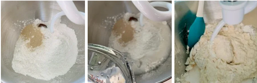 • Stop the mixer occasionally to scrape the dough from the sides of the bowl.
