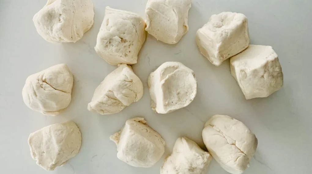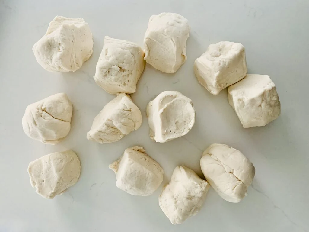 Use a sharp knife to cut the dough into 12 fairly even pieces.